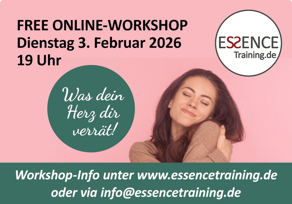 Wir lieben es, Menschen in ihrem Wachstum zu unterstützen. Daher ist die Veranstaltung kostenlos. Wer mag: Eine Spende über PayPal an info@essencetraining.de unterstützt uns und unser Essence Training Team.